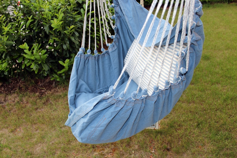 - Im Garten lässt sich der Hängesessel entweder klassisch an einem stabilen Baum oder bequem mit einem Hängesesselgestell aufstellen.